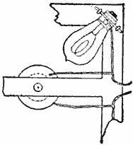 A medium-sized and strong oilcan is used for the reservoir, the spout being cut off close to the screw part and a steel or brass tube, about 5/16 in. in diameter, soldered to the stub end. The tube is bent as shown. A piece of wicking is drawn into the tube so that the upper end is within 1/4 in. of the tube end. The end of the tube is then fitted with a piece of brass rod with a very small hole in the center. The hole is made in the following manner: Before the piece is cut from the rod, it is held in a vise and the sharp end of a scriber is carefully driven into the center. A little oil placed on the scriber point will keep it from sticking in the metal. Measure the depth of the hole and cut the rod off just above the point. File the end of the piece cut off with a fine file until the point of the hole is reached. This hole must be so small that light can be barely seen through it.