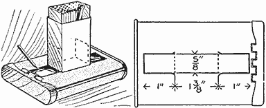 The holder consists of a small box, the same size as a match box, with a sloping spring bottom and spring wires covering the lower part of the front side. One end of the match box is removed and the contents dumped into the holder. The matches fall to the lower sloping edge, where one match at a time can be easily removed.—Contributed by Bert Verne, San Diego, Cal.