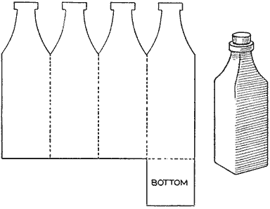 The performer presents to his audience two pasteboard covers, one bottle and one glass. Saying that he wishes to secure the safety of the bottle and glass, he places covers over them, cautioning the audience to note carefully which cover incloses the glass and which the bottle. Then he says that, to prevent any misunderstanding as to their positions, it is desired the audience designate which cover holds the glass. The response will be unanimous, "the left" or "the right" as the case may be, but on raising that cover the bottle is exposed. Covering the bottle again, and asking the audience if they were quite sure that their eyes did not deceive them, he states that the glass is really under the cover just lifted and returned to its place. To prove it, the cover is lifted again, to show the glass this time. The changing can be done as often as desired, or will amuse the crowd.