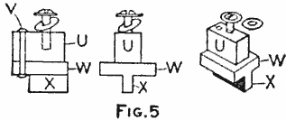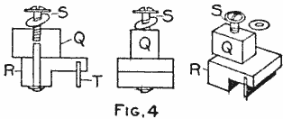 A simple instrument for finding and marking the center of shafting, etc., can be easily made of three pieces of sheet brass and a small prick punch.