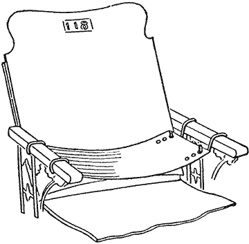 A deck, 18 in. long, is fastened on each end, as shown in Fig. 3. It is made of strips fastened to a crosspiece. The seats, or thwarts, consist of 10-in. boards, and are placed on short strips fastened to the side planks about 5 in. from the bottom. The oarlocks are held in a wedge-shaped piece of wood, having a piece of gas pipe in them for a bushing, the whole being fastened at the upper edge of the side planks with screws, as shown in Fig. 4. The location of these must be determined by the builder.