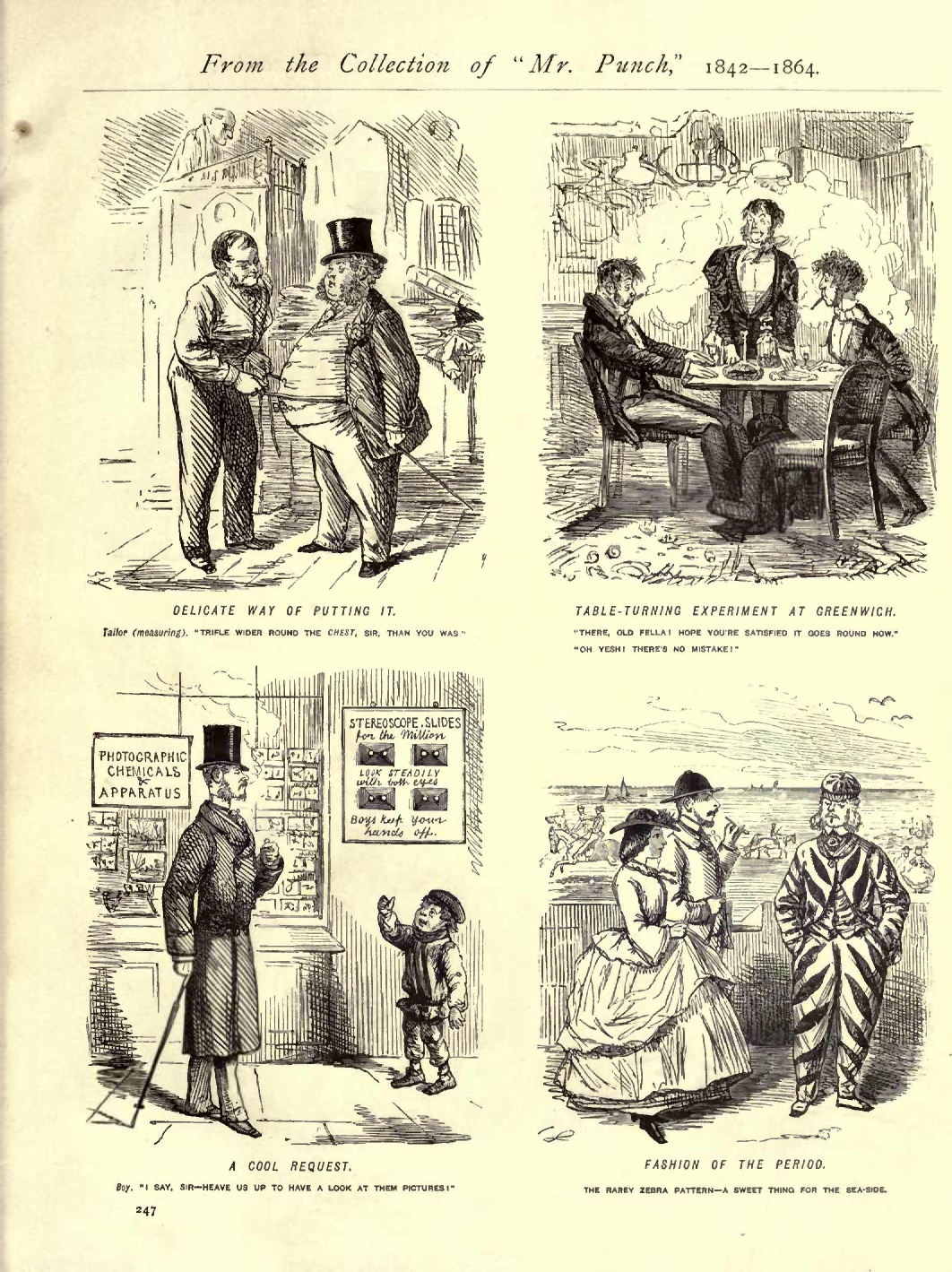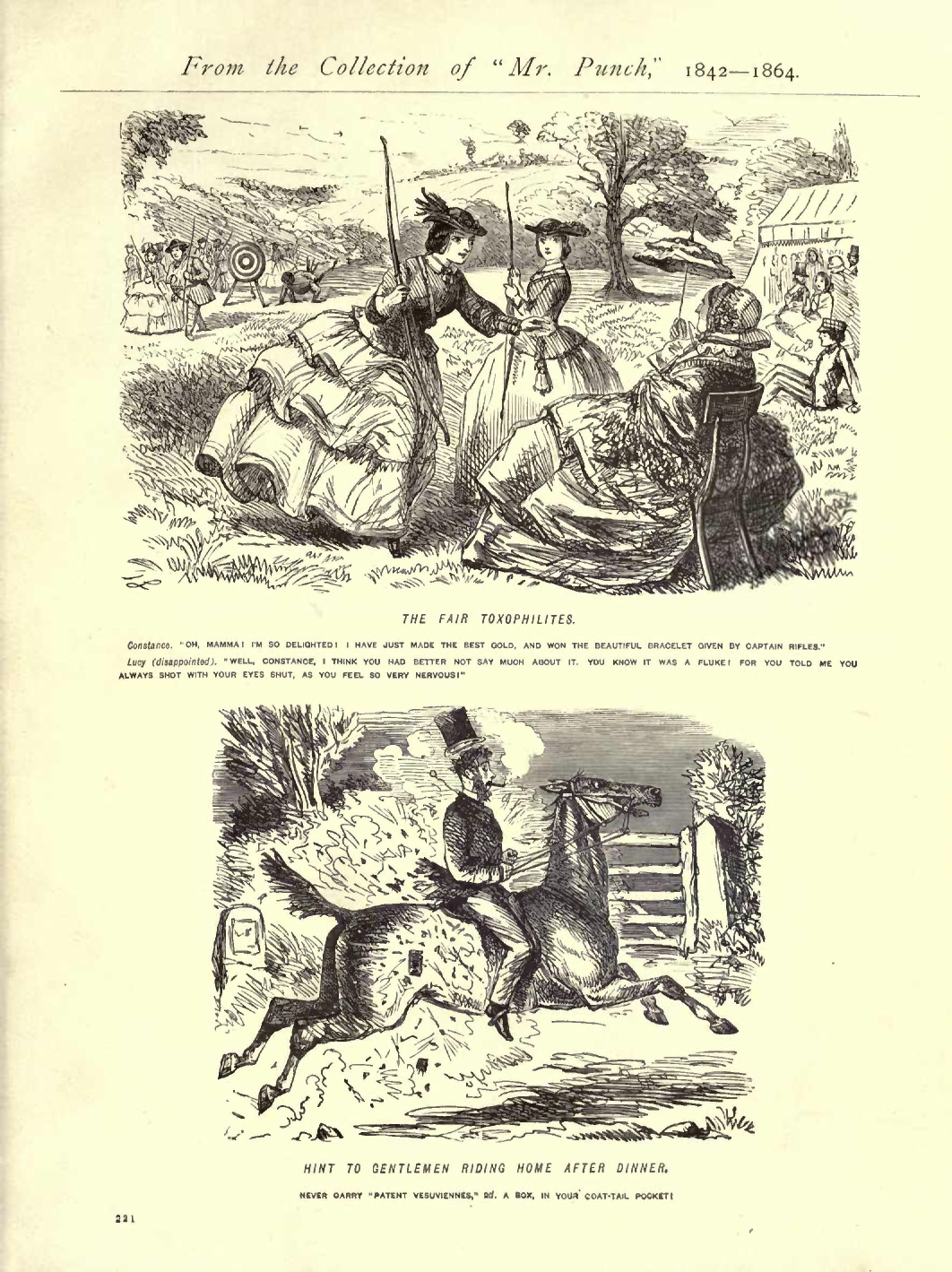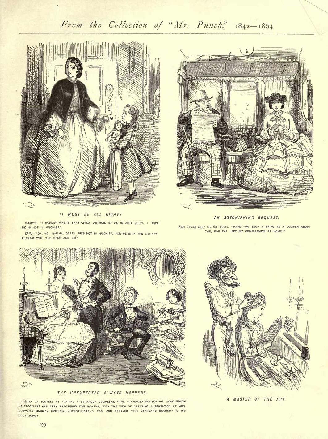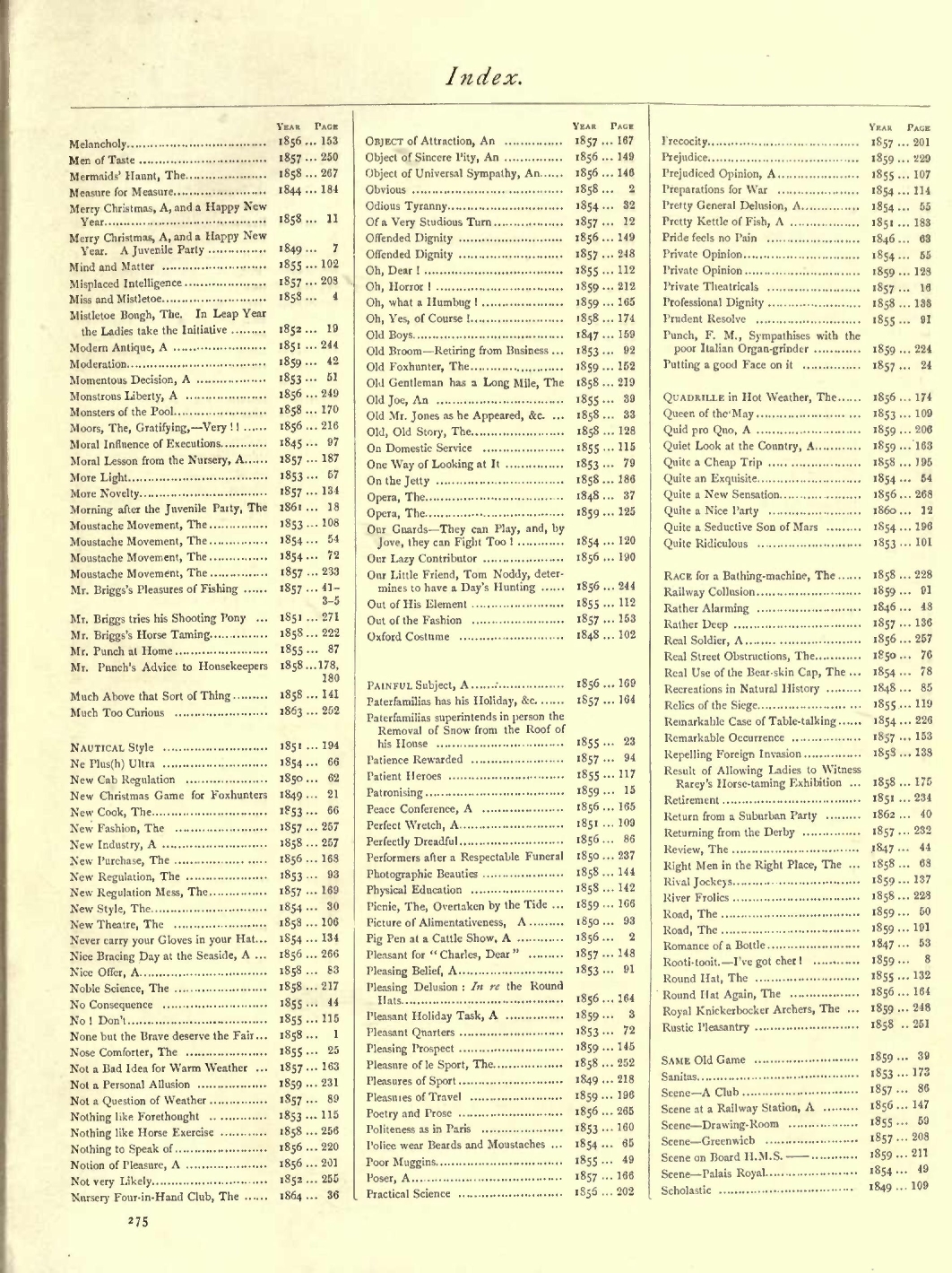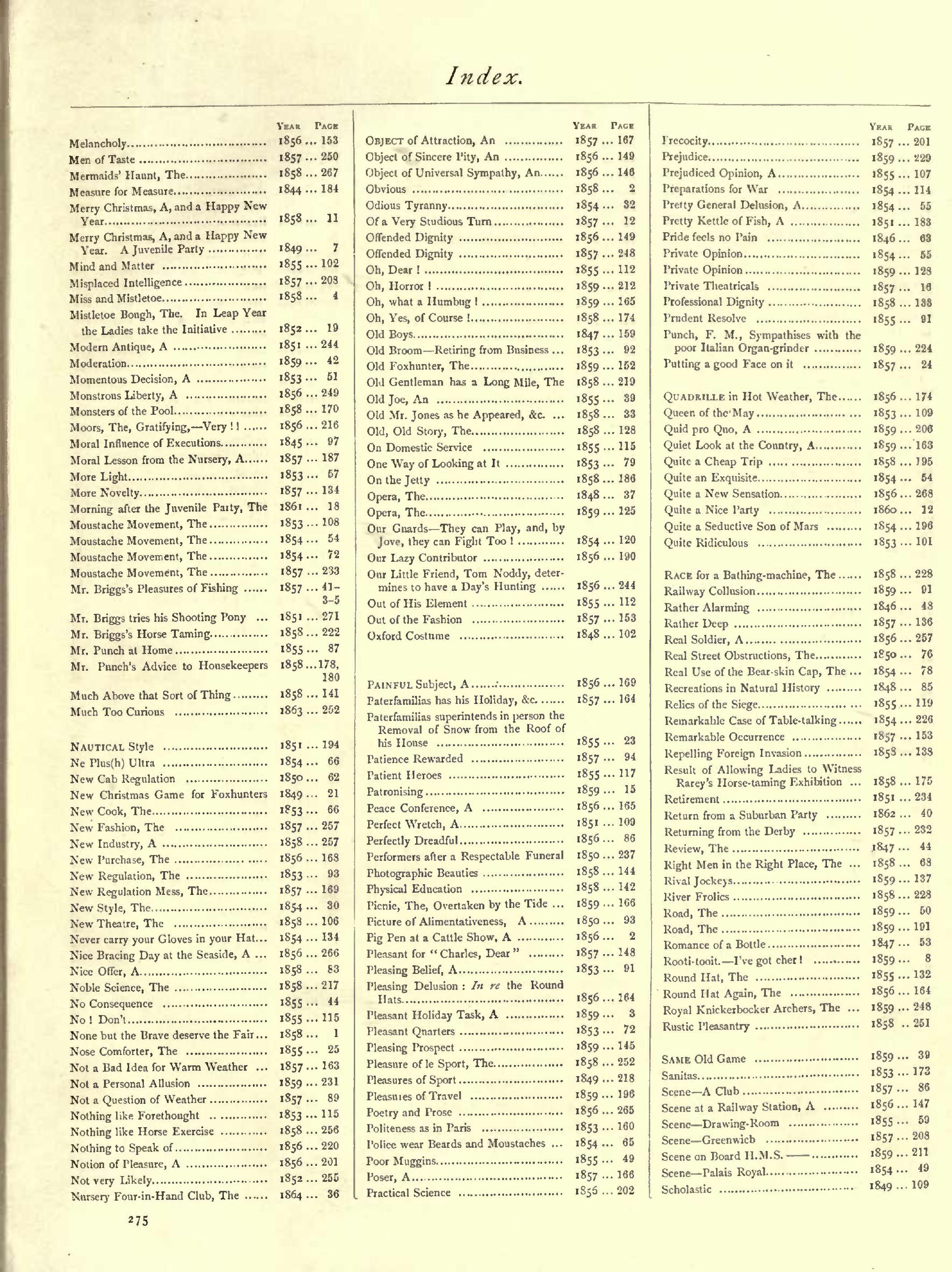 Vagaries of Fashion ...................................1855...089 Vain Shadow, A ........................................1844...101 Valentine, The ........................................1849...157 Valentine's Day........................................1854...076 Varieties in Horse-Taming .............................1858...129 Very Alarming, Indeed .................................1846 ...159 Very Artful Contrivance................................1857...261 Very Attentive ........................................1858 ... 21? Very Considerate ......................................1858...085 Very Friendly .........................................1857...050 Very Green-eyed Monster, A.............................1858...029 Very Large Notions.....................................1858...149 Very Natural Mistake, A................................1856...253 Very Odd ..............................................1853...161 Very Old Friend, A.....................................1850...079 Very Particular Party, A...............................1858...059 Very Rude, Indeed .....................................1858... 104 Very Shocking Boy, Indeed, A ..........................1857...131 Very Thing, The .......................................1857...218 Victim of Fashion, A ..................................1856...113 Visit to a Dog Fancier, A .............................1846...096 Vive le Sport 1 .......................................1859...230 Volunteer Movement—The Distinguished Rifle-shot.......1861...010 Waiting for the Carriage ..............................1853...110 Wake in the Mining Districts, A .......................1853...225 Wanting in Reverence...................................1852...100 Warblers under Water...................................1858 ... 1ll Water Abstainer, A.....................................1858...187 Weather and the Streets, The...........................1861...022 Weather in the Parks, The..............................1854...020 Weighty Matter, A .....................................1856...151 Well Intended, No Doubt ...............................1852...114 Well Out of It ........................................1849...065 Well they may Call This a Health-giving Pursuit........1855...069 We'll Serve the Shop ..................................1857...155 Wet Day at the Sea Side, A ............................1858...242 What Indeed? ..........................................1855...097 What a Shame!..........................................1853...058 What a Shame!..........................................1864...029 What a Terrible Turk!..................................1856...024 What must be the Next Fashion in Bonnets ..............1854...055 Where are the Police?..................................1855...139 Where Ignorance is Bliss, &c...........................1845...182 Where There's a Will There's a Way.....................1859...094 Whilst a Respectable Female takes care of the House....1857...165 Wholesome Conclusion, A ...............................1858...158 Wholesome Feast........................................1857...012 Who will Serve the Country?............................1857...154 Who wouldn't be a Riding Master?.......................1852...060 Why not? ..............................................1853...145 Will and the Way, The .................................1856...229 Winter in the Suburbs..................................1854...027 Wonderful Intelligent Child ...........................1857...213