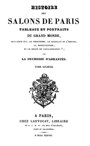 *** START OF THIS PROJECT GUTENBERG EBOOK HISTOIRE DES SALONS DE PARIS TOME 6 ***