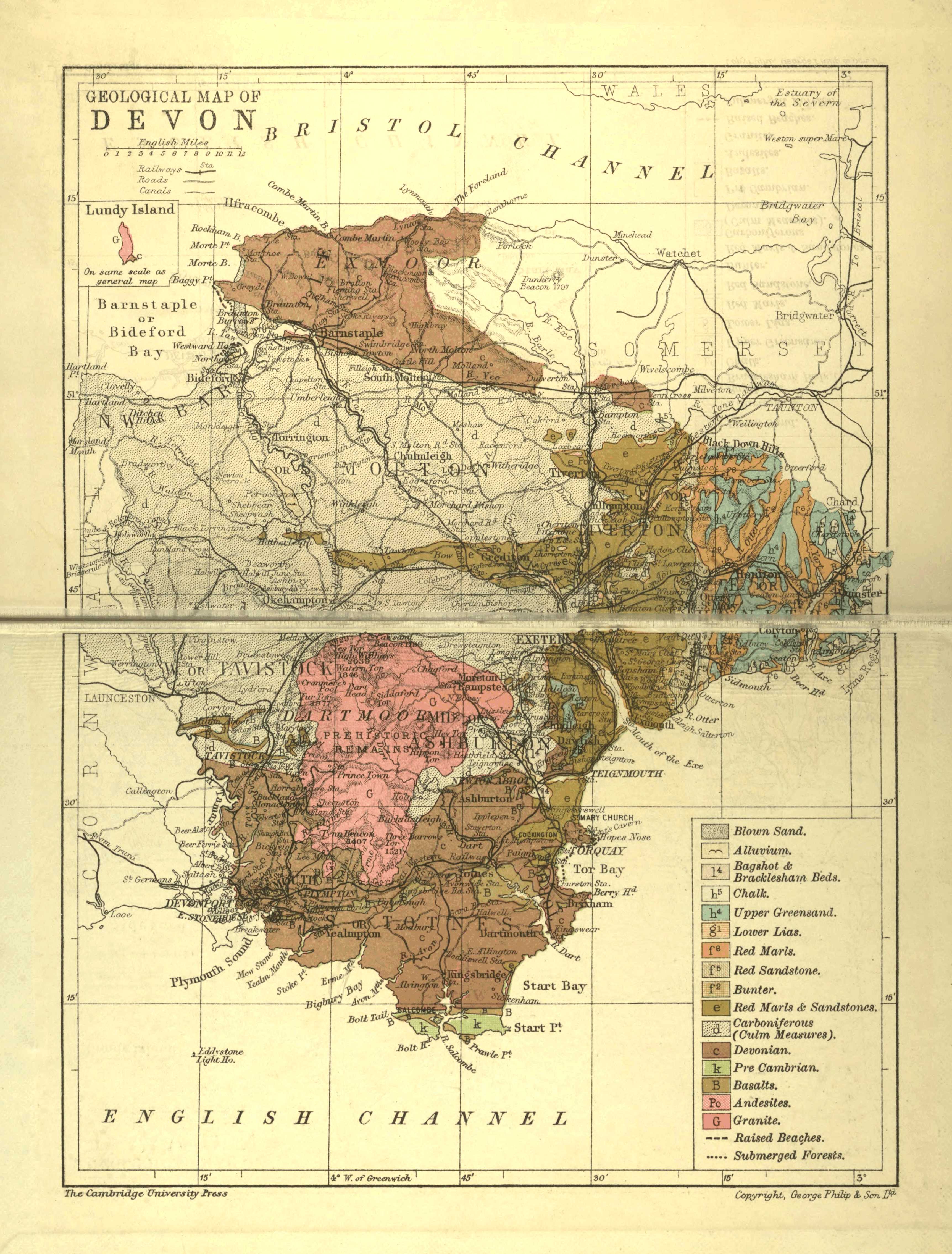 Bovey Tracy (2693), six miles north-west of Newton Abbot, is noted for beds of clay and lignite, and for its potteries. (pp. 25, 40, 114, 122, 123.)