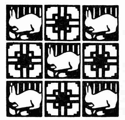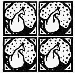 Nature of Decorative Design.—The one fact never to be lost sight of by the decorator is the real nature of true decorative design. It is never a picture. While it may suggest the natural forms of plants or animals, it does not aim to represent them in a naturalistic way. Some of the best decorative designs do not even suggest natural forms; but, whether they do or not, the central idea is the repetition of good combinations of line and form in closely related colours and values on a flat surface. If natural forms are used, they should be more or less highly conventionalized. Anything that destroys the idea of flat surfaces in the same plane is a false note in wall decoration. In the nature of the case, a wall can have but one plane. Clusters of flowers or patterns of any kind that seem to hang in front of this plane, or back of it, are out of place and therefore offend the sense of fitness. Such incongruities are sometimes so pronounced that they positively shock the sensibilities of refined people. Extreme examples[41] have been known to give such pain to sensitive persons as to drive them from the room.