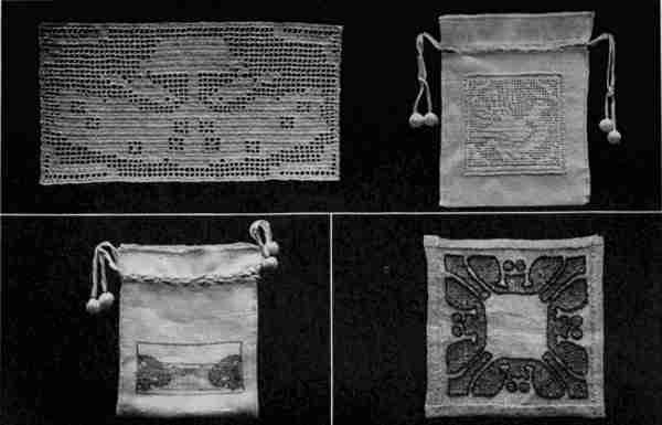 | Crocheted Panels, a Linen Work Bag with Conventional Landscape in Darning Stitch, a Crash Table Mat Embroidered in Darning and Couching Stitch | 118 |
