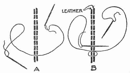 Referring to the accompanying sketch (Plan A) it will be noticed that the corner posts and centres were not mortised into the sills, but were simply butted on and heavily nailed or spiked. There was a time when carpenters would have regarded such a method as altogether wrong; but those were the days of great corner posts and heavy studding, placed two or three times as far apart as is the practice now. It was thought that placing the studs 16 inches on centres, which is the common practice in modern house framing, removed the necessity of mortising into the sill. Mortising is still recognized, however, as a good thing to do and is sometimes practised by first-rate carpenters.[29] Plan A also shows how the outside walls were trussed over openings; and Plan B shows how the corners of the building were tied by the lapping of the double plate, and how the ceiling timbers and rafters were placed on the top of the plate.