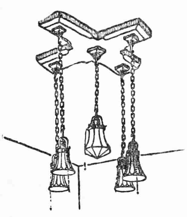The colouring of the walls of the bedroom, bath room, and kitchen was not so important a question[20] as the decoration of the three front rooms. Utility and sanitary conditions were important things to be considered. Light tints were decided upon, which in the bedroom might be relieved, in the finishing touches, by delicate stenciled figures in some warm tone.
