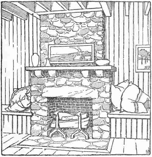 The House a Work of Art.—One of the first lessons learned by these young builders—perhaps the most important one of all—was that a great many things have to be thought of in planning a house, if the thing is to be well done. It is not simply a question of deciding how many rooms one will have, arranging them in some conventional order, and building the house around them with whatever external features style or fancy may dictate. Too many houses, it is true, are planned, or at least put up, in this thoughtless fashion; and whatever goes into them in decoration or furniture is generally chosen either for necessary use or for display—not with any thought of the real comfort and satisfaction that come from artistic surroundings. People who are satisfied with such dwellings seem to show less appreciation of art, the highest product of civilization, than those uncivilized tribes who decorated their caves or huts with beautiful rugs of their own weaving and who ornamented their pottery and their utensils and implements with wonderfully conceived and elaborately wrought[5] designs. Modern cave dwellers in apartment houses with all the conveniences of their ready-made surroundings, are in danger of missing that self-expression in their home belongings that encouraged and delighted even the savage. The most extreme example of this form of degeneracy is found in the suggestion of a certain great inventor, that the age of concrete construction, now at hand, means that we are to have concrete houses poured into a standard mould, hardened in twenty-four hours, and finished for occupancy in a day or two.