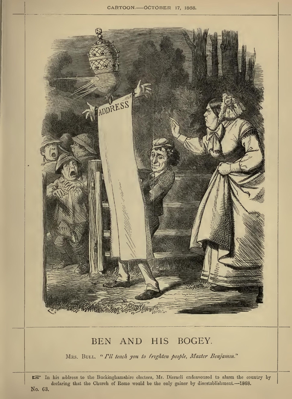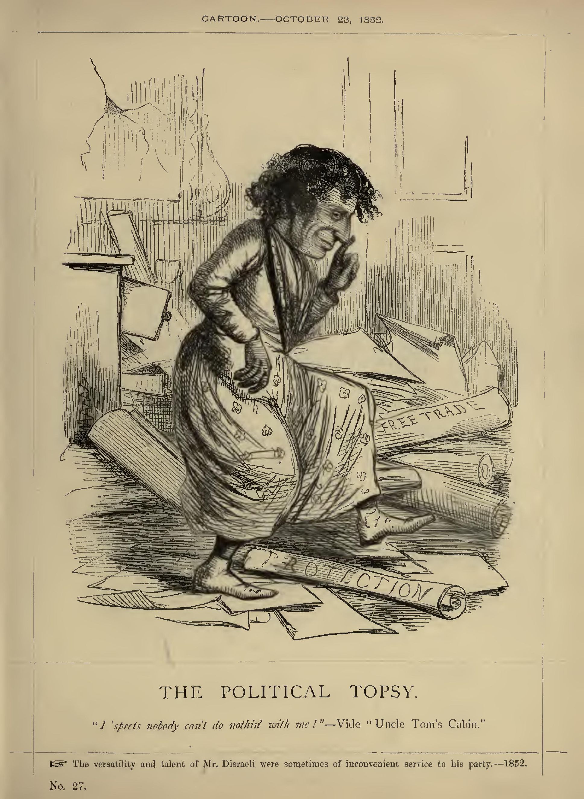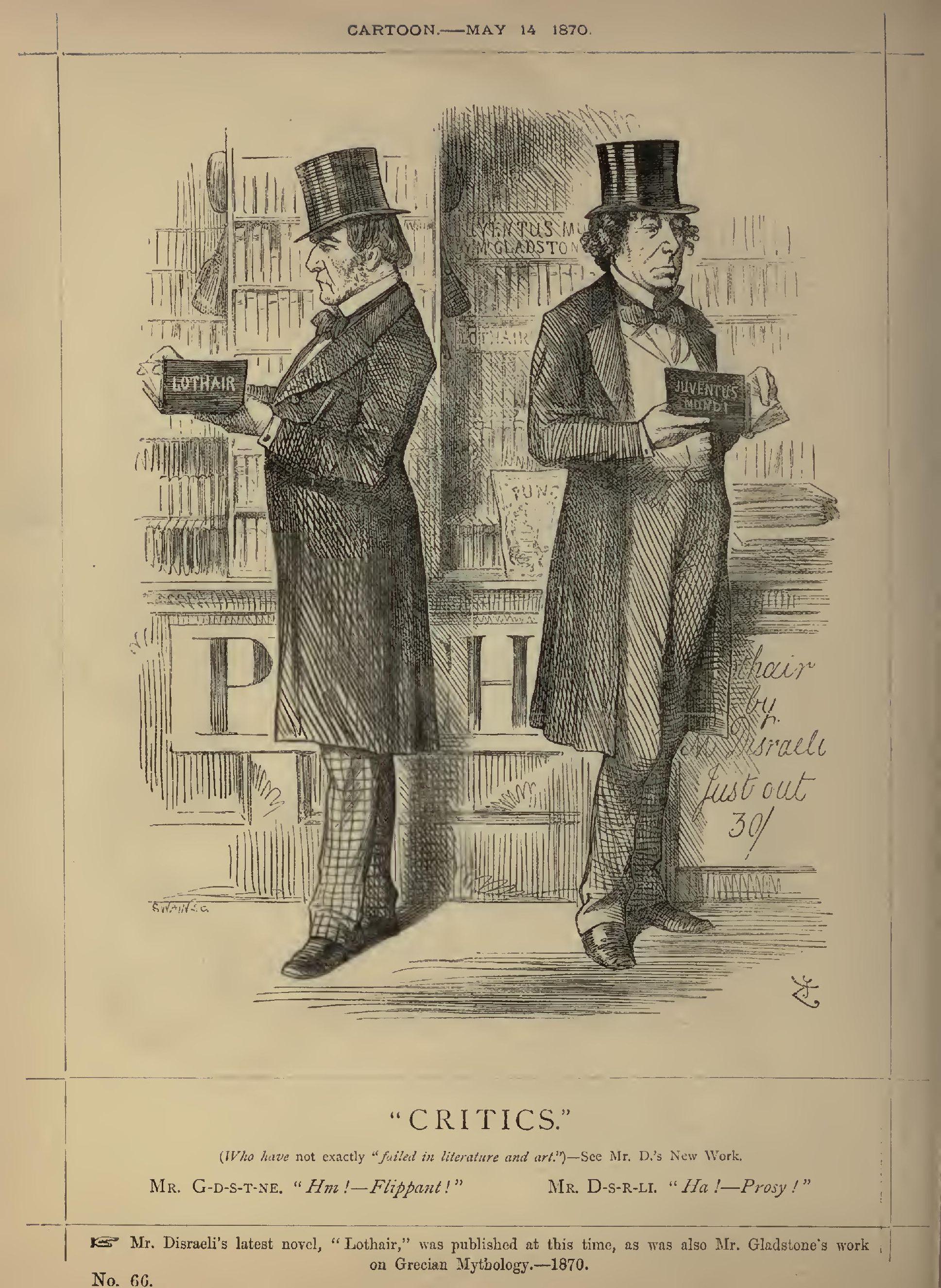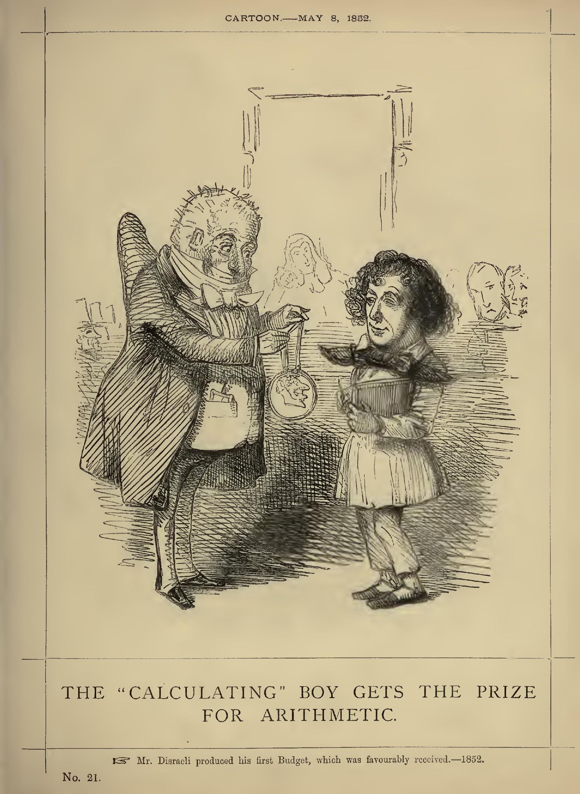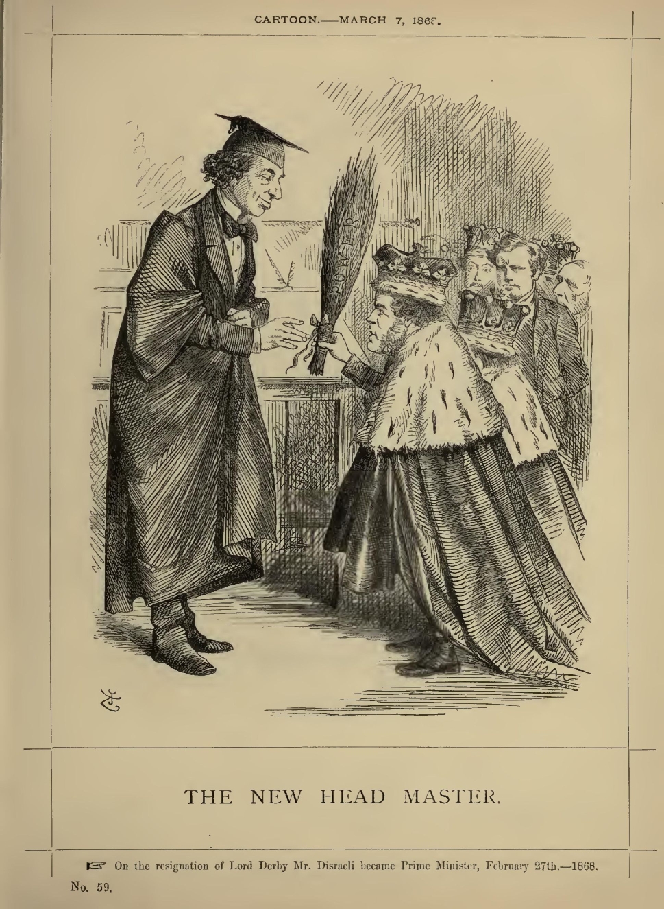 ON of Isaac D'Israeli, author of Curiosities of Literature, of Jewish extraction; born in London 21st December, 1805; published his political novel, Vivian Grey, 1825; travelled in the East between 1828 and 1831; contested Wycombe in 1831, and Marylebone, 1833, both unsuccessfully; was returned for Maidstone, 1837; for Shrewsbury, 1841; for Bucks, 1847; member of Sir R. Peel's party until Peel became a convert to Free Trade, from which time Mr. Disraeli allied himself closely with the Conservatives, of whom he became the leader in the House of Commons after the death of Lord George Bentinck in 1848; conspicuous for his attacks on Peel in Parliament; Chancellor of the Exchequer in Lord Derby's first Ministry, 1852; and in his second, 1858-9; in 1859 brought in a Reform Bill which was defeated by the Whigs; again Chancellor of the Exchequer in Lord Derby's third Ministry, July, 1866; brought in a second Reform Bill, based on Household Suffrage, which was passed, 1867; on Lord Derby's resignation, February, 1868, became Prime Minister, which office he resigned at the end of the year; on Mr. Gladstone's Government resigning office, in consequence of their defeat on the Irish University Bill, March, 1873, Mr. Disraeli was commissioned by the Queen to form a Ministry, but declined to do so under the then circumstances. On Mr. Gladstone appealing to the country in 1874, the election returns placed him in a minority, and he resigned without meeting the new Parliament; Mr. Disraeli succeeded him as Prime Minister and formed his cabinet, March, 1874; created Earl of Beaconsfield, August, 1876; first Plenipotentiary for Great Britain at the Congress of Berlin, 1878, and K.G. Lord Beaconsfield's principal novels (besides Vivian Grey) are The Young Duke, Henrietta Temple, and Venetia, and, since his entrance on political life, Coningsby, Sybil, Tancred, and Lothair.