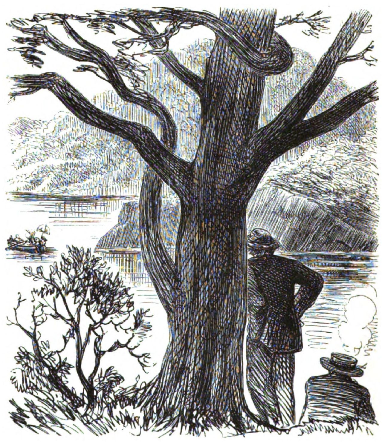 These lions, from whose manes and tails we have ventured to extract a few memorial hairs, were inspected before luncheon; immediately after that refection, we set forth per rail, and via Kingston, to Killiney. We had ample time, as we went, to contemplate the surrounding objects, which were not “rendered invisible from extreme velocity,” the nine miles occupying forty-five minutes; but we saw nothing of especial interest until we had reached the station, and began to ascend the hill. Then we exulted, eye and heart. The hill itself is worthy of a visit, the massive blocks of “its cold grey stones” contrasting admirably with the rosy heaths (I never saw ericas in greenhouse or garden with such a fresh, vivid brightness, 1) and with the glowing, golden furze. Ah, how poor and formal are statues, and terraces, and vases, and “ribbon-patterns,” and geometrical designs, and “bedding out,” when compared with nature's handiwork! And though, perhaps, never since the days of “the grand old gardener” has ornate horticulture attained so great a splendour, what true lover of flowers is really satisfied with our gorgeous modern gardens? We treat them, for the most part, as a child, with a new box of paints, his pictures—all the most glaring colours are crowded together; and the eye, dazzled and bewildered, yearns for that repose and harmony which, in nature, whether in the few flowerets of some hidden nook, or in the fiery autumnal grandeur of some mighty forest, diffuse perpetual peace.