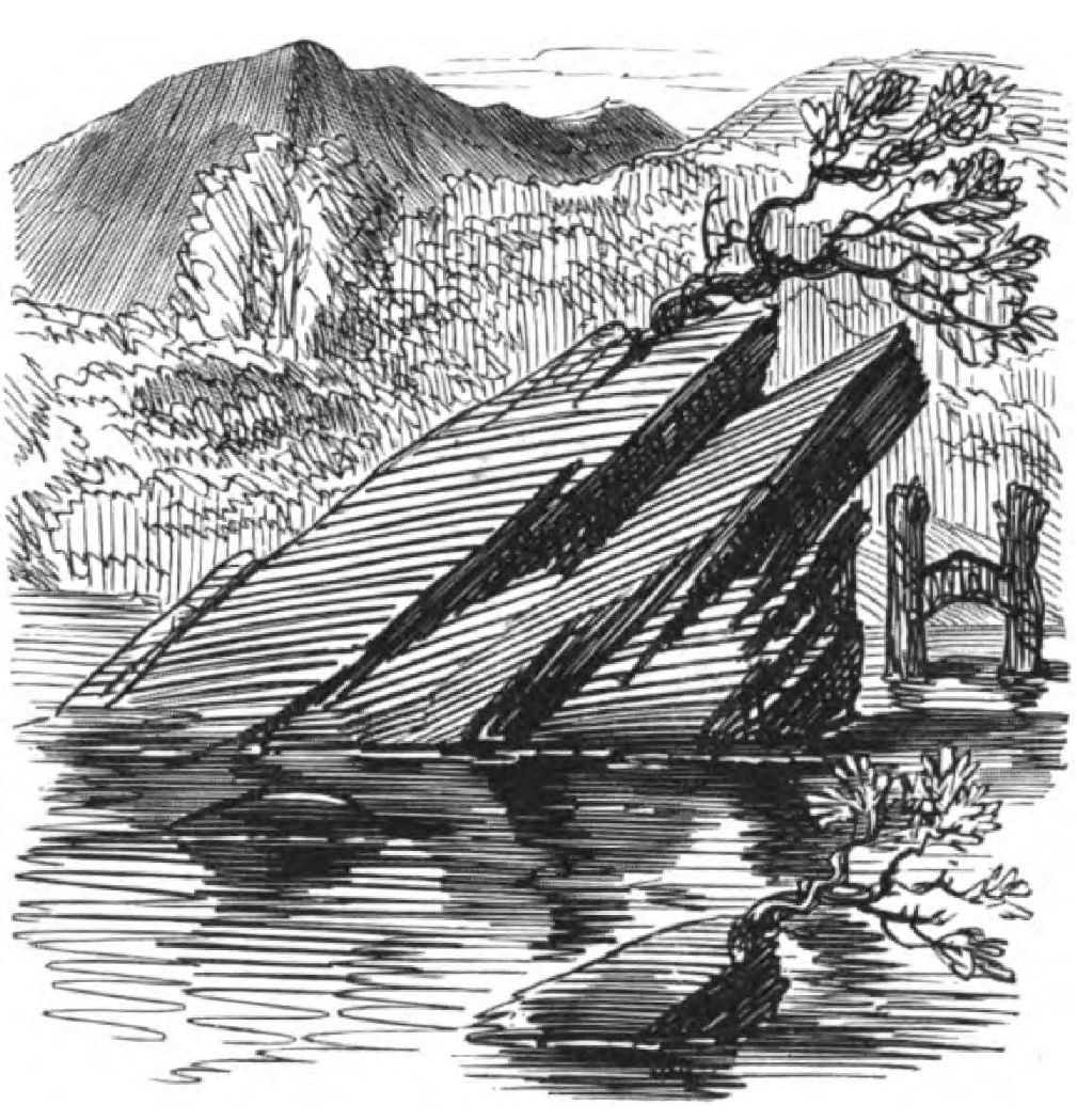À propos of cornfields, I must not forget a striking example of scientific ingenuity, which we saw in this neighbourhood. A small cornstack had been raised, so grievously out of the perpendicular, that the tower of Pisa would have looked severely straight by it. But the builder saw his error, before it was too late, and had gloriously saved his cereal structure, by erecting another, opposite to and abutting towards it, until they supported each other, like the commencement of those card houses, which we built in early youth, a chevron in heraldry, or two drunken sots “seeing each other home.”