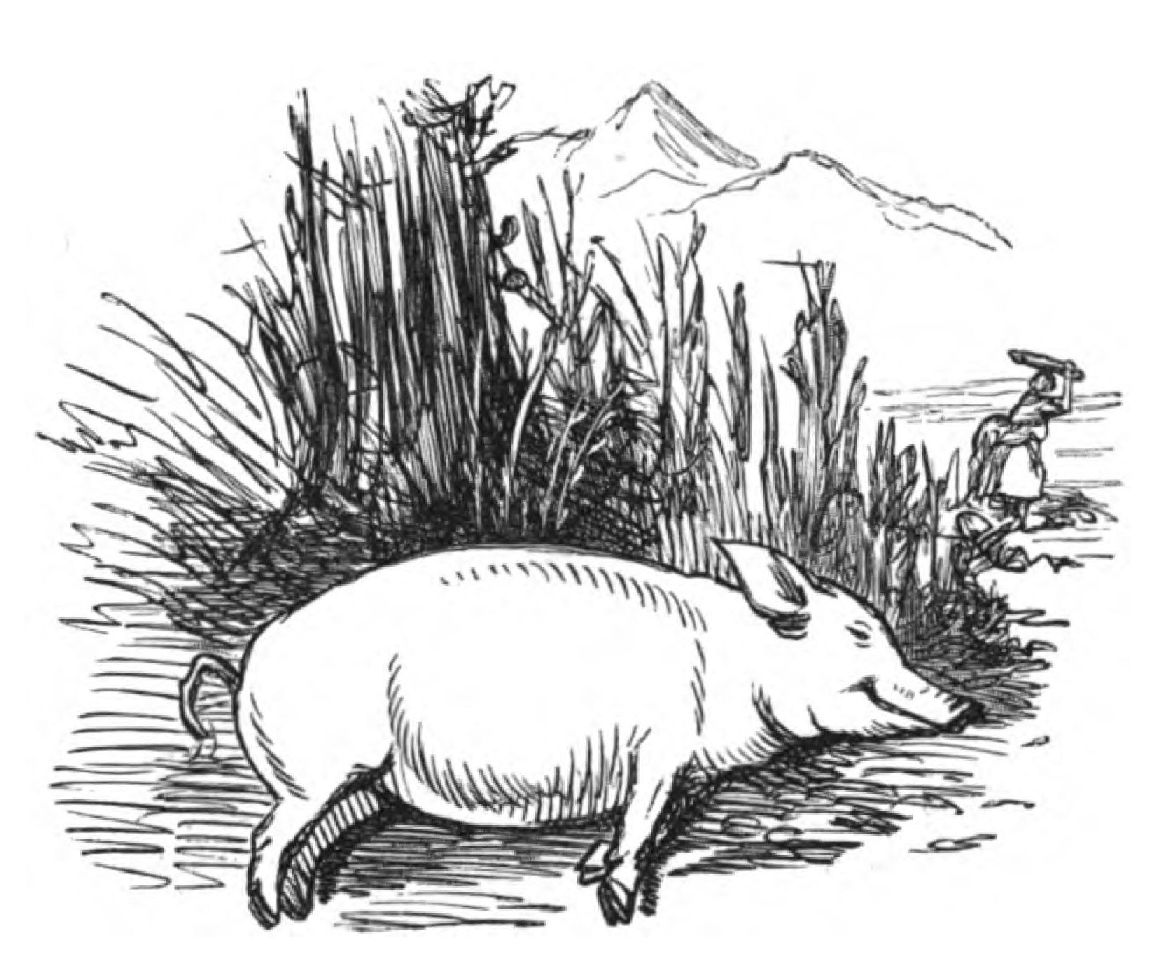 (I may add bene curandâ, as the bacon that is to be cannot possibly hear), and so serenely dignified in its complete repose, so “mildly majestical,” that one almost expected to see a point-lace nightcap, and fair girls fanning away the flies! He looked as happy as Gryllus, that companion of Ulysses, who, being transformed into a pig by Circe, and, being subsequently offered redintegration, preferred the swinish estate; huge and handsome as the famous boar, who ate the Reverend Mr. Haydn, after the victory of the rebels at Enniscorihy; 1 obese and sleepy, as Silenus, when found by the shepherds, Chromis and Mnasylus; 2 refreshed and comfortable, like that great O'Neill, who (Camden says so) was wont to plunge himself into the mire, as a cooler and restorative, after great excess.