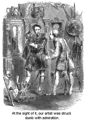 It was in the year 1538, one morning in May, that the people of the old narrow-streeted town we have described, were surprised to find a strange family had arrived among them. The new-comers were a young couple who brought with them an infant in arms, and presently established themselves in a small house on the outskirts of the city, the frontage of which looked upon one of the steep crooked streets, and presented to view a workshop, in which were displayed various objects calculated to attract the eyes of passers-by. Above all, at the entrance of the door was placed the figure of a dog, modelled and painted in such life-like fashion, that many a time was this sturdy-looking guardian of the threshold challenged to single combat by the perplexed dogs of the good town.
