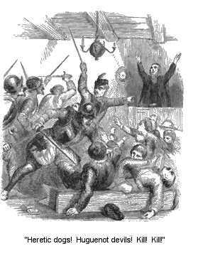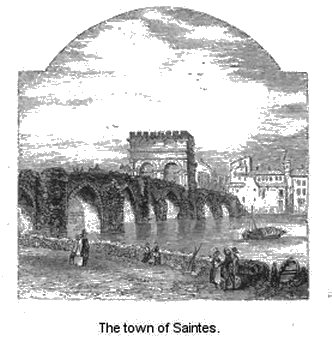 It was the eve of St. John, the twenty-third of June, 1546, when the citizens of Saintes beheld a strange and ominous scene, the commencement of the horrors subsequently perpetrated within the walls of their ancient town. The day, being a gala one, was ushered in with music of every kind, while the whole population, down to the lowest of the multitude, were decorated with flowers. Old pitch-barrels and faggots, piled up along the banks of the river, lay in readiness for the illuminations of the evening, while games, dances, and banquets were the diversions of the day. In the afternoon, there were to be many hogsheads of claret delivered out, and a universal merry-making prevailed. From an early hour crowds hastened to perform their devotions at the shrine of the patron saint of the city, carrying with them their votive offerings with which to propitiate his favour.