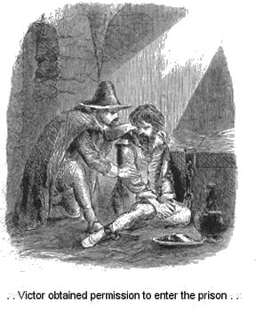 That evening there occurred what Bernard called “an admirable accident.” The three heretics had been conveyed to their prison-house carefully guarded; and, above all, Robin, who was the p. 38principal object of hatred, and whom it was designed to put to death with the most cruelty. He was kept, with his companions, heavily ironed, in a prison attached to the bishop’s palace, and a sentry was placed to watch outside, while a number of large village dogs were turned into the court-yard. But, for all these precautions, Robin did not despair. He had obtained a file (probably Palissy could have told how he managed this,) and having filed off the irons which were upon his legs, he gave the file to his fellow-captives, and proceeded to scrape a hole through the prison wall. But a strange accident here occurred. It chanced that a number of hogsheads which had been emptied during the fête, had been piled, one above another, against the wall, and these being pushed down by the prisoner, in his efforts to escape, fell with rumbling noise, and awakened the sleeping sentry, who listened for a while, but hearing nothing further, and overcome by the fumes of the liquor in which he had indulged somewhat freely, relapsed into slumber. Bernard tells, in his quaint manner, what next befell, thus: “Then the said Robin went out into the court at the mercy of the dogs; however, God had inspired him to take some bread, which he threw to the said dogs, who were quiet as the lions of Daniel. It was so ordered that he should find an open door, which led into the garden, where, finding himself again shut up between certain somewhat high walls, he perceived by the light of the moon, a tall pear tree, close p. 39enough to the outer wall, and having mounted this, he perceived, on the outer side of the wall, a chimney, to which he could leap easily enough.” He was soon safe in the street, but, having never been in the town before, he was at a loss how to proceed. In this dilemma, the clever fugitive recalled to mind the names of the physician and apothecary who had attended him, and went knocking from door to door inquiring for their residence. He had contrived to fasten his fetters to his leg, and carrying his dress about his shoulders, had the adroitness to arrange it somewhat after the costume of a footman, so that the people whom he roused were deceived, and supposing it to be an urgent case of sickness, gave him the necessary directions. In this manner he succeeded in gaining the shelter of a friendly roof, and from thence was conducted safely out of the town; nor was he again taken, though, in the course of his perilous adventure, he had knocked at the door of one of his principal enemies, who, in the morning, offered a reward of fifty dollars for his recapture.
