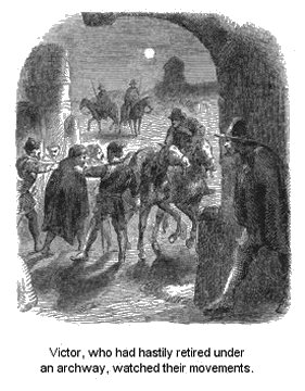 At that moment Lisette, who had risen from the bench on which they had seated themselves, looking toward the palings of their garden, perceived a tall figure leaning there. She directed the attention of her husband to this person, and then retired into the chamber with her infant. A few moments after, Bernard was in eager conversation with the stranger. They spoke in low accents, as though anxious not to be overheard. “Let us go down to the field together,” said Palissy; “I must speak with thee, master Philibert, where our words may be freely uttered;” and presently the two had disappeared in the twilight.