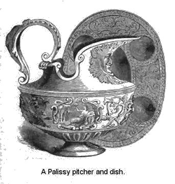 p. 42Undaunted by the failure of his early efforts, and relieved, for a time, from anxiety on the score of domestic wants, Palissy, giving the money he had received for the execution of his task into the hands of his wife, resumed his “affection for pursuing in the track of the enamels.”