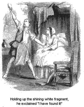 With winged feet he flew home, bearing his treasure, which he pronounced “exceedingly beautiful,” and, almost beside himself with delight, he rushed into the chamber, where his poor wife lay in her sick bed, and holding up the shining white fragment exclaimed, “I have found it!” Lisette caught the infection of his gladness, and hailed the first ray of returning prosperity. Poor woman, she little knew how long she must wait before she could warm herself in its sunshine.