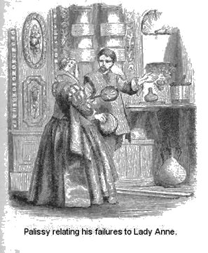 In the present narrative, I have attempted to give an account of the facts which Palissy has himself recorded, weaving them into a tale. For instance, he tells us, in one of his treatises, of his troubles, and experiments, and sorrows, during the time he was engaged in discovering the white enamel; and he gives, now and then, a peep at his domestic life, showing how his poor children drooped and died; how he became burdened with debt; that his p. 4family and friends reproached him for his long and unprofitable toil; and that his neighbors joined in their invectives against his folly; also, that when reduced to the greatest straits, he obtained help from a friendly publican.