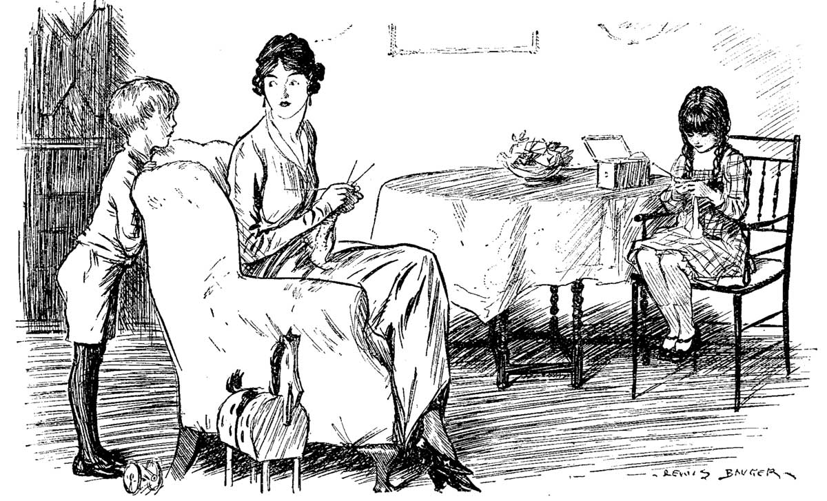 "I do try, but she doesn't seem to care about it—she's always knitting. I think, mother, perhaps it might be better if, for the next war, we had a boy."