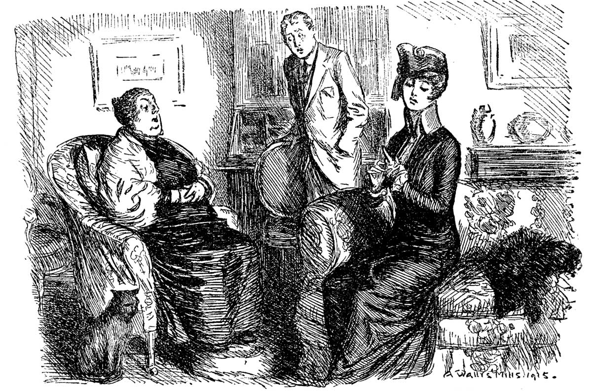 "If you imagine," I said, "for one moment that this insidious offer of a stolen bone will induce a gentleman of family to countenance an engagement between his daughter and an advertisement for Scotch whisky you are greatly mistaken. Be off with you, and never let me see your ruffianly whiskers near my basket again!"