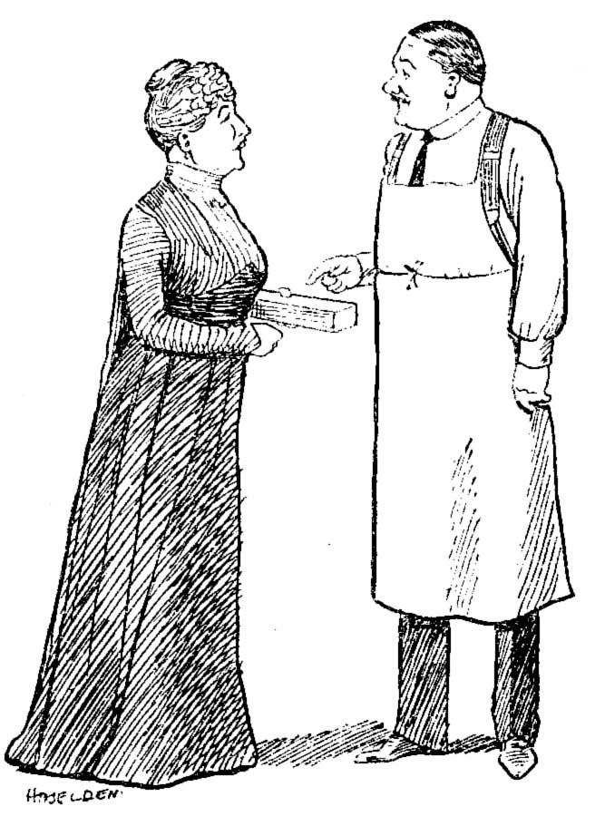 And that (very nearly) was Lord Charles Temperleigh's luck. Being a spendthrift he was kept at The Bungalow, Ashford, without money; he escaped to the shop of his old nurse at Mudborough, with the idea of borrowing from her—and if you are a clever dramatist you can easily arrange that he should be left alone in the shop and mistaken for the genuine salesman. Unfortunately for my complete happiness (and no doubt Lord Charles's too) the shop was a chandler's; however, if that is not the rose, it is at least very near it. The chandler sells soap and the grocer sells cheese, and you can make a joke about the likeness as Mr. R. C. Carton did. And if Lord Charles should happen to be Mr. Charles Hawtrey and he should be accompanied by Miss Compton, you can understand that this and other jokes would lose nothing in their delivery.