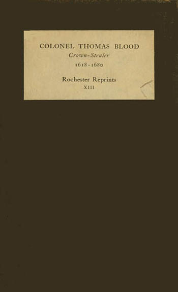The story here told has been related elsewhere though not in such detail nor, so far as I am aware, from precisely this point of view. Apart from the accounts in encyclopedias and biographical dictionaries, of which by far the best for its day is the Biographia Brittanica, the most accessible source of information is the article on Blood in the Dictionary of National Biography and the fullest details are to be found in W. Hepworth Dixon's Her Majesty's Tower, VOL. IV, pp. 119, and in a note (No. 35) to Scott's Peveril of the Peak, in which novel the Colonel plays enough part to have a pen-portrait drawn of him by Scott in a speech by Buckingham.