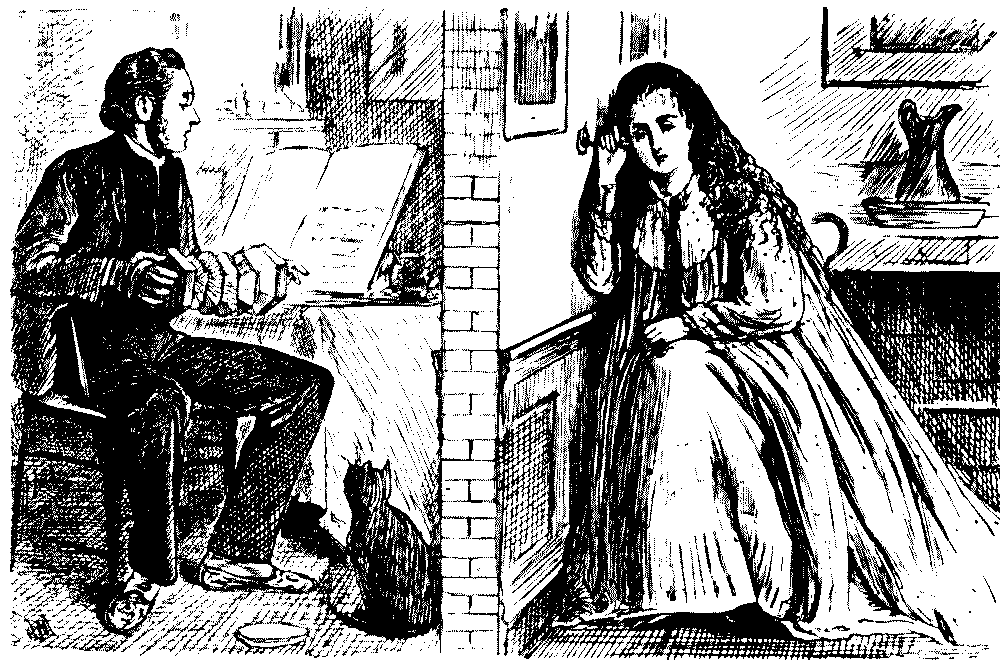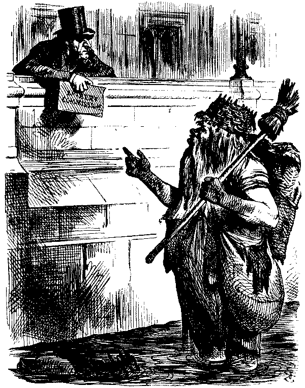 Throughout the Mutiny Punch was hostile to Canning, and his "Clemency," representing him as unduly tender to the mutineers and invariably interfering on their behalf. This criticism reaches its height of injustice to the statesman who uttered and acted on the noble maxim "I will not govern in anger," in the mock proclamation which appears in the issue of October 24. There was probably better ground for the imaginary conversation between the Duke of Cambridge, as Commander-in-Chief, and Lords Lucan and Cardigan, in which the two latter noblemen sneer at the services of Havelock. This disparagement, be it noted, was not confined to the Crimean cavalry commanders; Mr. Gladstone declined to vote for the grant of a pension, and was in consequence associated by Punch with the Manchester School, whose pacificist organ, the Star, had been savagely burlesqued in the issue of October 31. Meanwhile the tide had turned in the war by the capture of Delhi and the first relief of Lucknow. The toll of heroic lives among our leaders had been heavy—Henry Lawrence, Nicholson and Havelock at the end of the year—but Punch was true to his old democratic instincts in recording the exploits of all ranks. He was eloquent in his appeal for the assistance of Miss Salkeld, sister of Lieutenant Salkeld, who lost his life in the blowing in of the Kashmir gate at Delhi. But he does not forget Salkeld's humbler associates, who with him "rushed upon death to make way for the bayonets of England when the great stronghold of treason was stormed":—