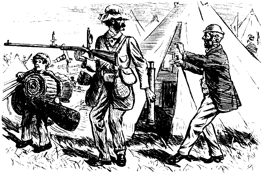 The war with China was not a glorious page in our annals: it remained in abeyance during the Mutiny and was not concluded till 1860. Indirectly it was one of the means of saving India by the diversion of the troops intended for the Far East, and already at Singapore, to the relief of Bengal at the urgent summons of Lord Canning, the Governor-General of India. The first mention of the outbreak in Punch followed close on the tragedy of Meerut early in May. In his "Essence of Parliament" we read:—