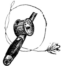 It was a sorry looking outfit—a fraction of a cane pole, about ten feet of a common line, and an indifferent hook looped on the end. The hand line was of better material, but a wreck—a very Gordian knot. They were dubiously but promptly passed over for inspection.