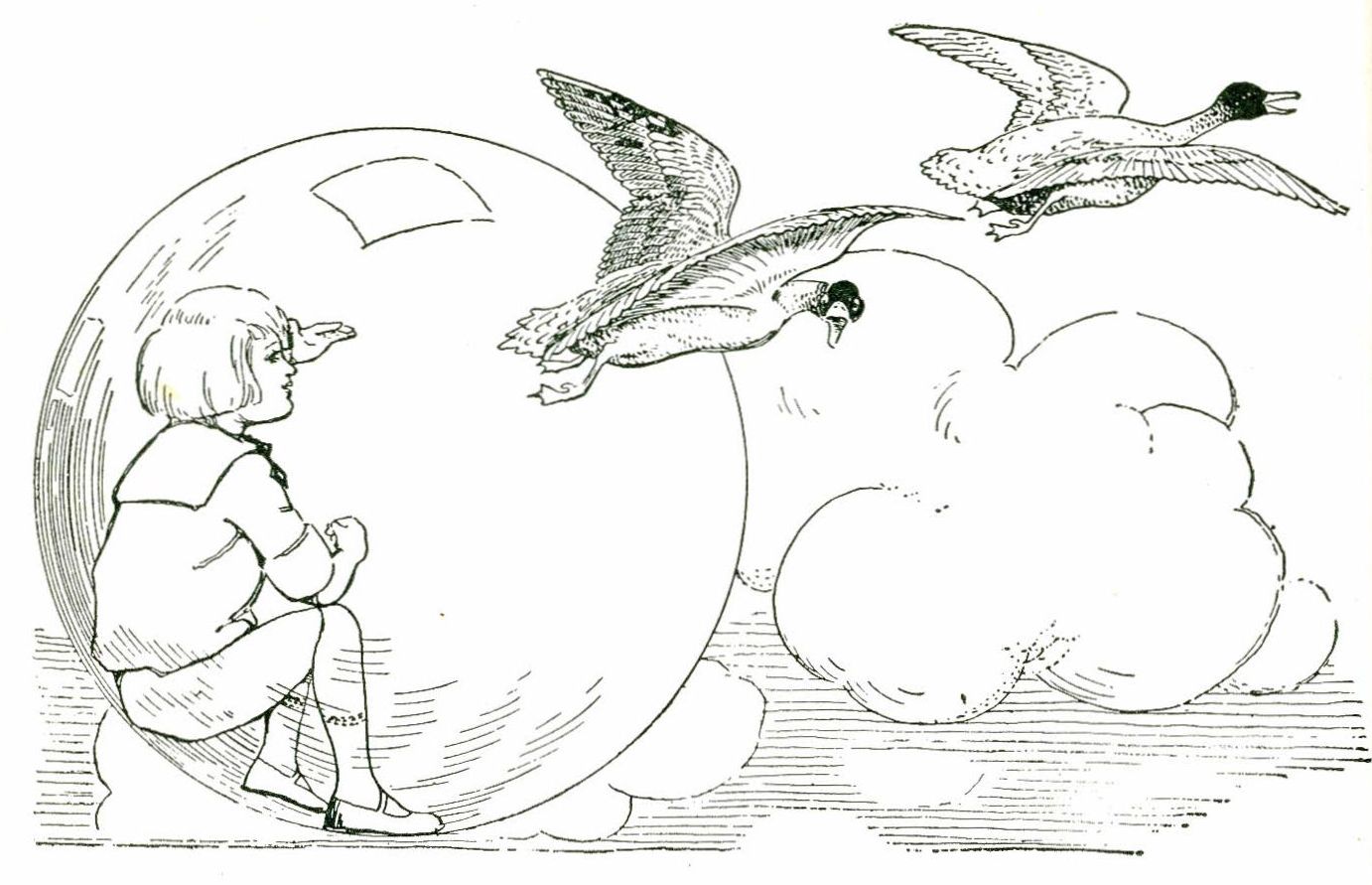 “Honk! Honk!” cried the leader again. He seemed to be dashing straight toward the bubble.