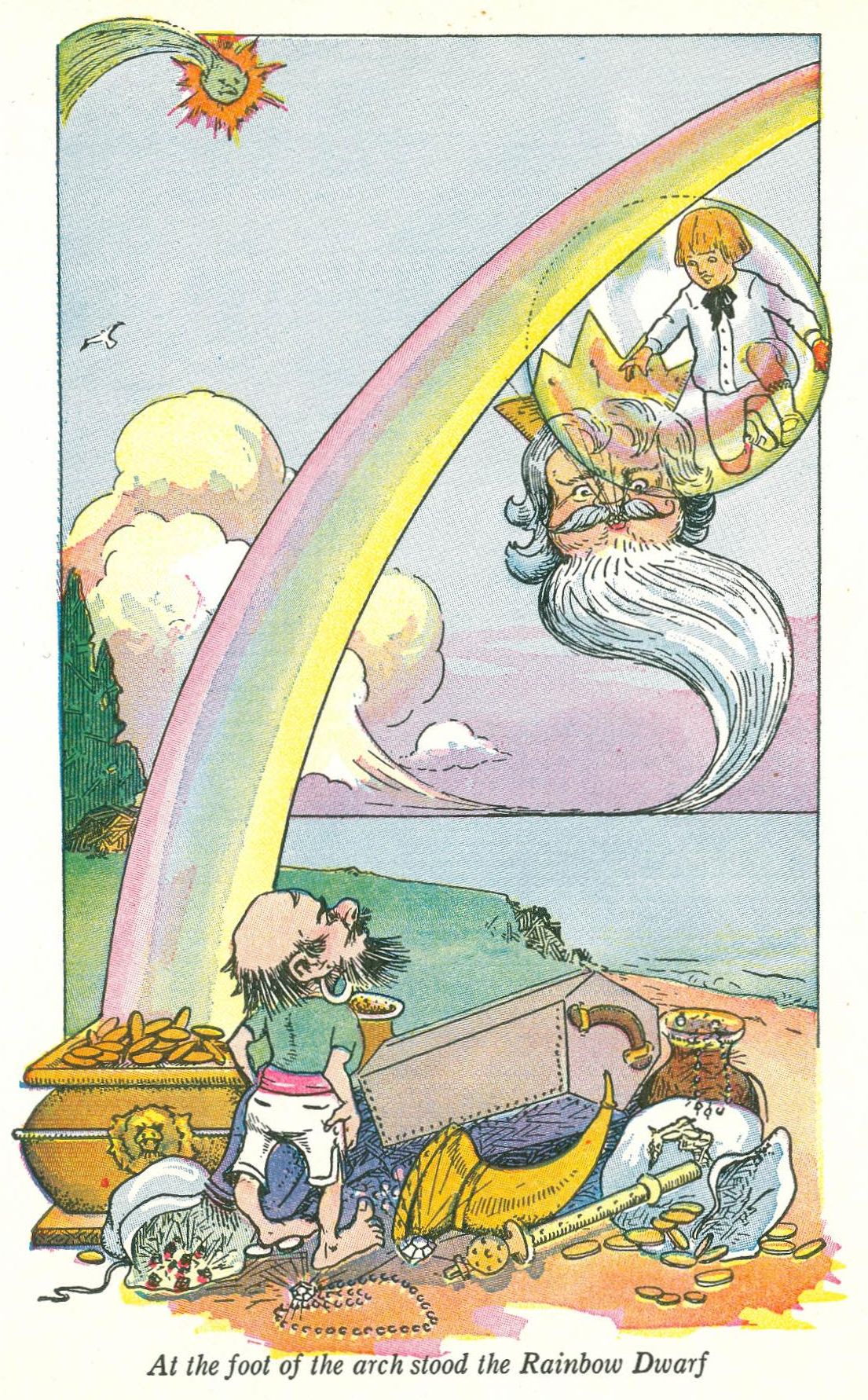 “Yes,” answered the fairy, “and all the countless treasures the Rainbow Dwarf guards there.”