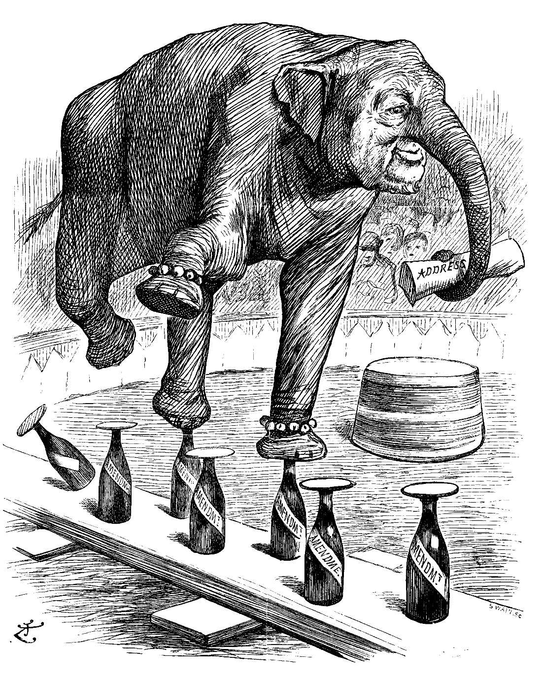 Friday.—Squire of Malwood left sick room to take part in debate and division on Jeffreys' Amendment to Address. Self-devotion dangerous on foggy, frosty night. But the result worth it, at least for crowded House that heard the speech. Best thing of the kind done in House since Dizzy's prime. Squire evidently profited by necessity for rapidity of composition. The sharpest barbs aimed at quivering figure of Jokim sitting opposite.
