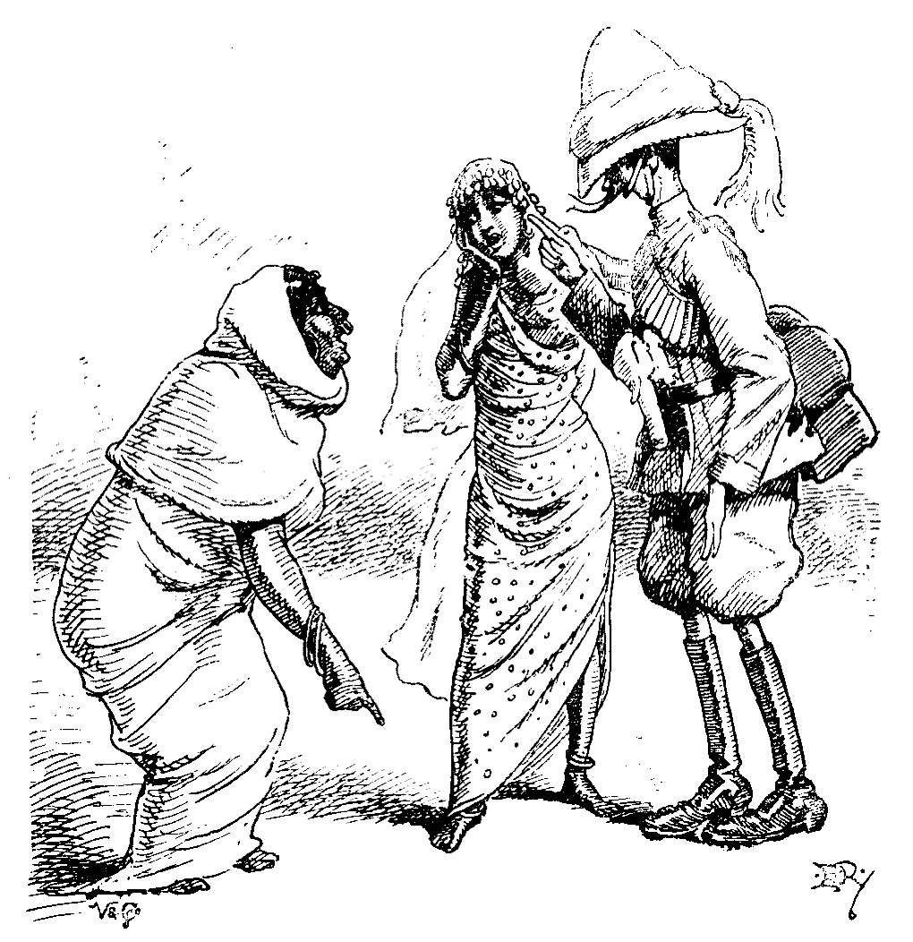 "But I won't fall upon you. I reserved my weight for the warrior that was once valued at five shillings and is now reduced to half-a-crown."
