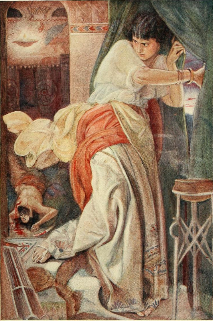 It was during this campaign, says Diodorus Siculus, that Ninus first beheld Semiramis. Her precise legendary or mythical origin is obscure. Some writers aver that she was the daughter of the fish-goddess Ataryatis, or Derketo, and Oannes, the Babylonian god of wisdom, who has already been alluded to. Ataryatis was a goddess of Ascalon in Syria, and after birth her daughter Semiramis was miraculously fed by doves until she was found by one Simmas, the royal shepherd, who brought her up and married her to Onnes, or Menon, one of Ninus's generals. He fell by his own hand, and Ninus thereupon took Semiramis to wife, having[Pg 26] profoundly admired her ever since her conduct at the capture of Bactria, where she had greatly distinguished herself. Not long afterward Ninus died, leaving a son called Ninyas. During her son's minority Semiramis assumed the regency, and the first great work she undertook was the interment of her husband, whom she buried with great splendour, and raised over him a mound of earth no less than a mile and a quarter high and proportionally wide, after which she built Babylon. This city being finished, she made an expedition into Media; and wherever she went left memorials of her power and munificence. She erected vast structures, forming lakes and laying out gardens of great extent, particularly in Chaonia and Ecbatana. In short, she levelled hills, and raised mounds of an immense height, which retained her name for ages. After this she invaded Egypt and conquered Ethiopia, with the greater part of Libya; and having accomplished her wish, and there being no enemy to cope with her, excepting the kingdom of India, she resolved to direct her forces toward that quarter. She had an army of 3,000,000 foot, 500,000 horse, and 100,000 chariots. For the passing of rivers and engaging the enemy by water she had procured 2000 ships, to be so constructed as to be taken to pieces for the advantage of carriage: which ships were built in Bactria by men from Phœnicia, Syria, and Cyprus. With these she fought a naval engagement with Strabrobates, King of India, and at the first encounter sunk a thousand of his ships. After this she built a bridge over the river Indus, and penetrated into the heart of the country. Here Strabrobates engaged her. Being deceived by the numerous appearance of her elephants, he at first[Pg 27] gave way, for being deficient in those animals she had procured the hides of 3000 black oxen, which, being properly sewn and stuffed with straw, presented the appearance of so many elephants. All this was done so naturally that even the real elephants of the Indian king were deceived. But the stratagem was at last discovered, and Semiramis was obliged to retreat, after having lost a great part of her army. Soon after this she resigned the government to her son Ninyas, and died. According to some writers, she was slain by his hand.