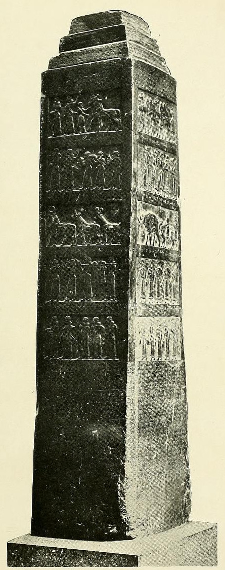 It is not until the reign of Assur-nazir-pal III (c. 883 B.C.) that we are once more enabled to take up the thread of Assyrian history with any degree of certainty. In this reign artistic development appears to have proceeded apace; but it cannot be said of Assur-nazir-pal that in him culture went hand[Pg 24] in hand with humanity, the records of his cruelties being long and revolting. His successor, Shalmaneser II, possessed an insatiable thirst for military glory, and during his reign of thirty-five years overthrew a great confederacy of Syrian chiefs which included Ahab, King of Israel. He was disturbed during the latter part of his reign by the rebellion of his eldest son. But his second son, Samsi-Rammon, came to his father's assistance, and his faithful adherence secured him the succession to the throne in 824 B.C.
