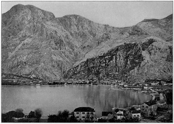 Who can describe the Gulf, or, as they call it there, the Bocche di Cattaro? It enjoys the distinction of being “perhaps the finest harbor in the world.” There is a break in the coast line; as you go in you find yourself in a broad bay; but that is not all; you pass through another opening, into another bay, and so on, the mountains growing higher all the time until, by passing five channels, one so narrow that it used to be stopped by a chain, and so is called to-day Catena, you reach the fifth bay, on the east shore of which, nestled up against the base of a high dark mountain, one of those from which the region Montenegro got its name, lies Cattaro, a town of five or six thousand inhabitants, the outpost of Austria to the south. For a brief period at about the end of the Napoleonic wars, Montenegro held this place and the Bocche. No doubt all Montenegrins long to possess it again; for it is their natural outlet to the sea, from which the thin line of Austria here shuts them out, except for the poor harbors farther south.