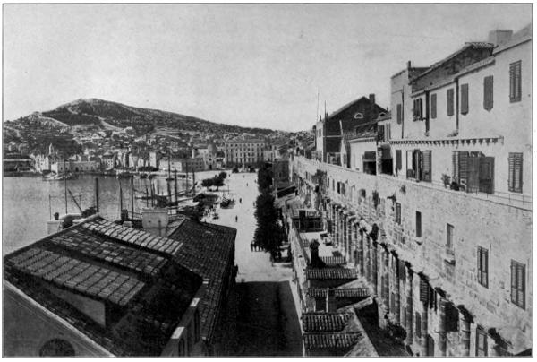 On the way from Cattaro to Spalato the chief object of interest is Ragusa, a strongly fortified city of about twelve thousand inhabitants, which, after maintaining itself as a free republic until 1805, often leaning upon Venice the while, went in the next decade through great vicissitudes, being in 1811 annexed by Napoleon to the new “Kingdom of Illyria,” and in 1814 falling into the hands of Austria, so good at taking hold but so slow at letting go. But, after all that may be said of the land-greed of Austria, it has been no evil lot for Dalmatia to fall into her hands. Austria has inherited—let Professor Freeman turn over in his grave to hear it said—the rôle of Rome as road-builder, civilizer, and introducer of general prosperity along this coast. She is now pushing a network of railroads along the coast and up from the coast towns into the interior. Ragusa has a very Venetian look in its old part and a very nineteenth-century look in its new part. Its surroundings are almost as interesting as the city itself. On the lovely island Lacroma, hard by on the south, is a church founded by Richard Cœur de Lion. Somewhat farther off to the north, on the shore, lies Canosa, ever remembered by a spring of pure water shaded by two gigantic plane-trees forty feet in circumference, an enchanted spot. At or near Ragusa lay the Greek city Epidauros.