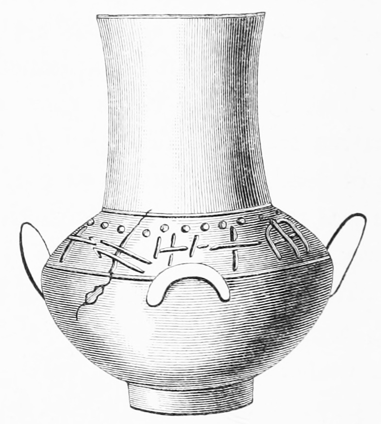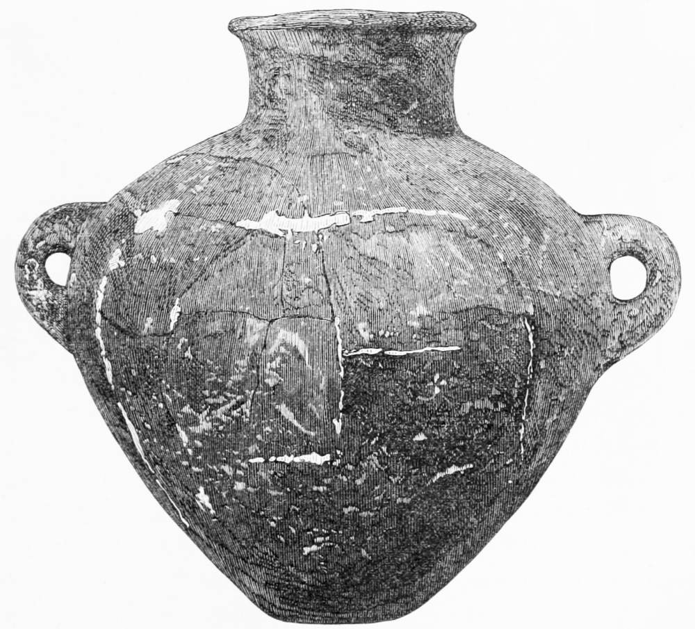 [247] See Plate XI.B. Six of the jars are shown, and a seventh (broken) lies outside of the cut to the right. The two largest of all are out of view, on the other side of the wall of the magazine, but one of them is seen in the view on Plate XI.A, in the left-hand bottom corner.