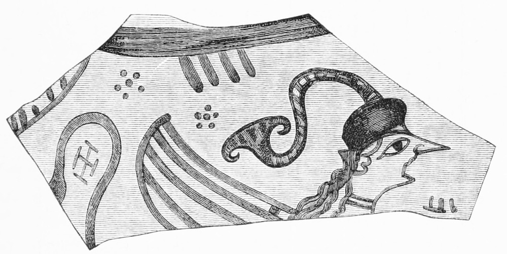 [245] Few coincidences have struck us more than the comparison of these helmet-crests with the frequent allusions in Homer, especially where “Hector of the dancing helmet-crest” (κορυθαίολος Ἕκτωρ), takes off the helmet that frightened his child (Iliad, VI. 469, foll.):—