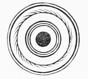 [277] See Plate XIV., No. 234. This round shield of copper (or bronze?), with its central boss, and the furrow and rim so suitable for holding together a covering of ox-hides, reminds us irresistibly of the seven-fold shield of Ajax:—Iliad, VII. 219-223 (cf. 245-247):—