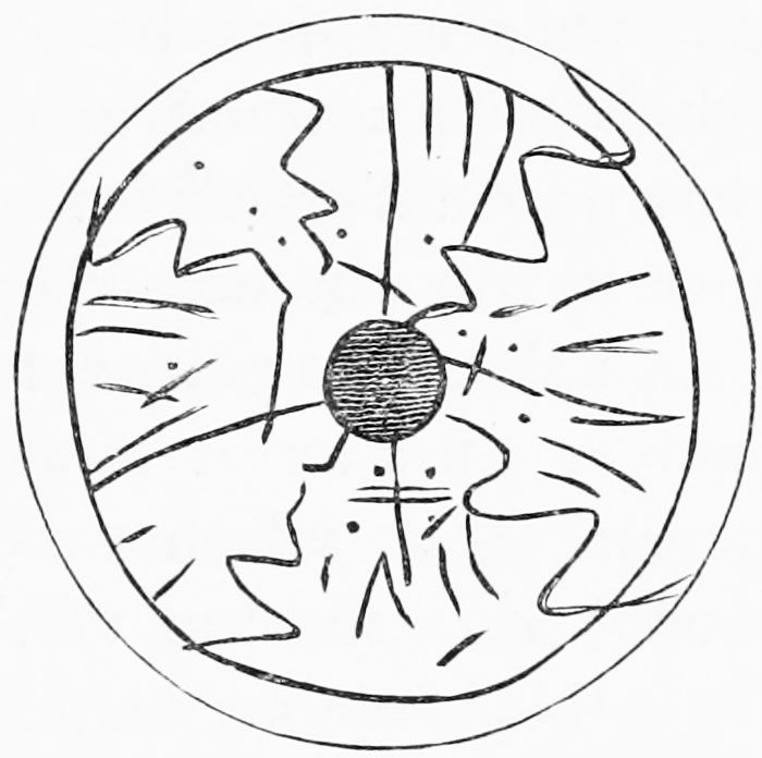 The decipherment of the inscriptions will probably go far to determine the curious question of the use of the terra-cotta whorls, found in such numbers in all the four pre-Hellenic strata of remains at Hissarlik. That they had{xix} some practical purpose may be inferred both from this very abundance, and from the occurrence of similar objects among the remains of various early races. Besides the examples given by Dr. Schliemann, they have been found in various parts of our own island, and especially in Scotland, but always (we believe) without decorations. On the other hand, the Aryan emblems and the inscriptions[15] marked upon them would seem to show that they were applied to, if not originally designed for, some higher use. It seems quite natural for a simple and religious race, such as the early Aryans certainly were, to stamp religious emblems and sentences on objects in daily use, and then to consecrate them as ex voto offerings, according to Dr. Schliemann’s suggestion. The astronomical significance, which Schliemann finds in many of the whorls, is unmistakeable in most of the terra-cotta balls; and this seems to furnish evidence that the people who made them had some acquaintance, at least, with the astronomical science of Babylonia.
