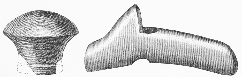 The extremely interesting concurrence of instruments of stone with those of copper (or bronze, see p. 361) in all the four strata at Hissarlik, may be illustrated by a case which has fallen under our notice while dismissing this sheet for press. A mound recently opened at the Bocenos, near Carnac (in the Morbihan), has disclosed the remains of a Gallic house, of the second century of our era, in which flint implements were found, intermixed with pottery of various styles, from the most primitive to the finest examples of native Gallic art, and among all these objects was a terra-cotta head of the Venus Anadyomene.[19] Such facts as{xxiii} these furnish a caution against the too hasty application of the theory of the Ages of Stone, Bronze, and Iron.