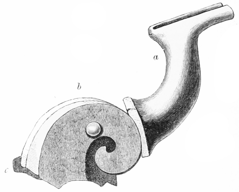 [236] A handle such as this, or as that shown at p. 260 (No. 174), seems well suited for the long leaning-staff (σκῆπτρον, from σκήπτομαι, “to lean upon”) which, in Homer, is the symbol of royal authority, and with which Ulysses beat Thersites. (Iliad, II. 46, 265, et passim.)—[Ed.]