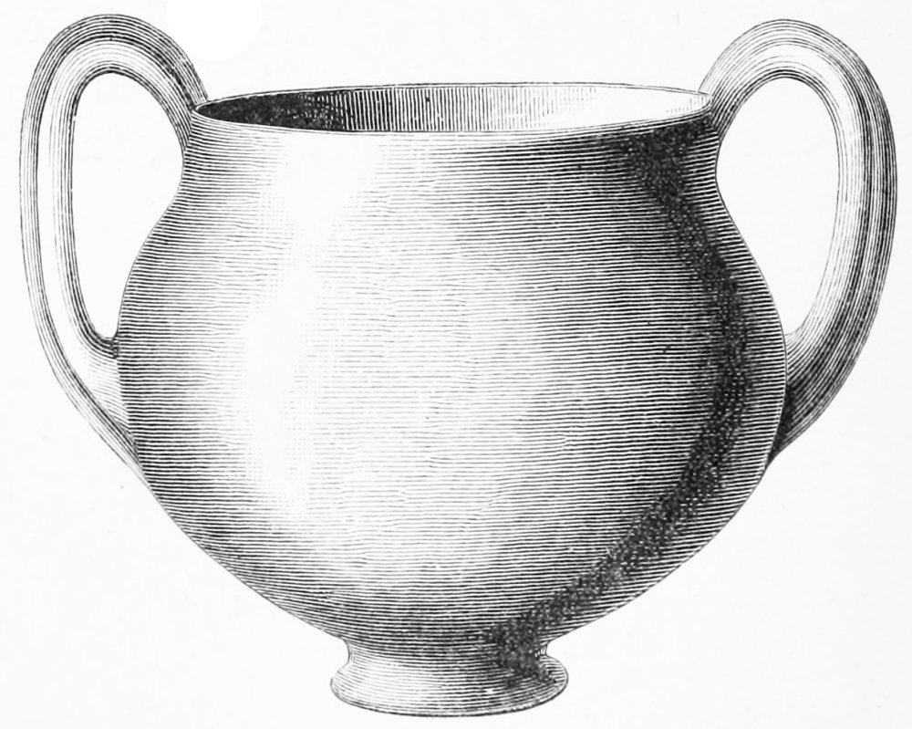 [282] Or, as suggested in the ‘Quarterly Review’ for April 1874, a person, holding the cup before him by the two handles, may have poured a libation from the further spout and then have drunk out of the nearer. Thus Achilles used a choice goblet (δέπας) for drinking wine and pouring libations to the gods. (Iliad, XVI., 225-228.)
