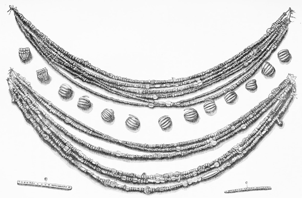 [296] Dr. Schliemann has strung these in two sets, one of which, consisting of 4610 pieces, is represented as Cut No. 282. The other set, of 4090 pieces, is precisely similar. The small jewels described are shown in detail on Plate XX., No. 278.