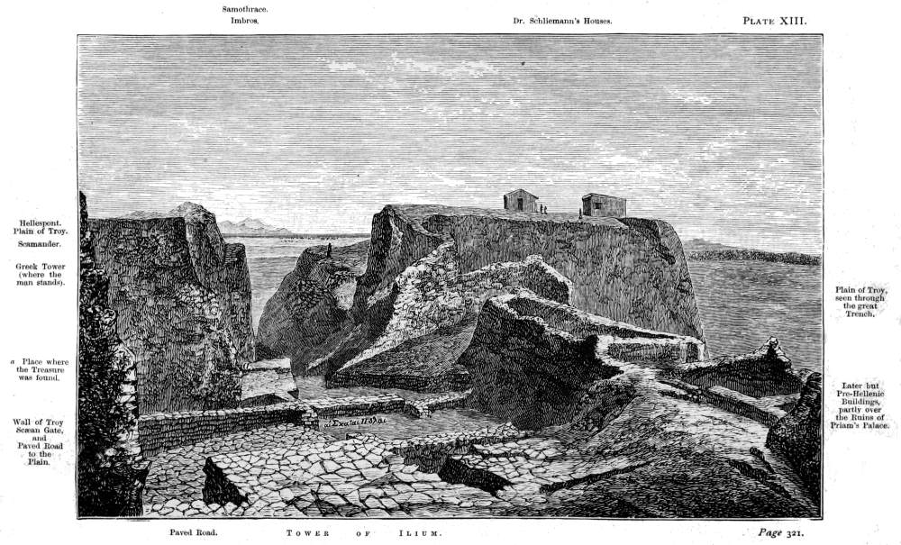 “I identify with the Homeric Ilion the city second in succession from the virgin soil, because only in that city were used the Great Tower, the great Circuit Wall, the great Double Gate, and the ancient palace of the chief or king, whom I call Priam, because he is called so by the tradition of which Homer is the echo; but as soon as it is proved that Homer and the tradition were wrong, and that Troy’s last king was called ‘Smith,’ I shall at once call him so.” Those who believe Troy to be a myth and Priam a shadow as unsubstantial as the shape, whose head