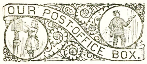 Correct answers to puzzles have been received from Jessie B. Brown, Charles Beyers, Hugh Burns, "Bolus," C. F. Bishop, Sadie Beebe, Bessie Bolton, Arthur C., John L. Collins, Nellie Cromwell, Maud Chambers, De F. W. Chase, C. H. Cole, A. E. Cunningham, R. O. C., Maggie Dutro, "Dick Deadeye," G. M. Fisher, L. M. Fobes, W. E. Gulick, Jun., Ashbel G., Alice C. H., George Hewson, Curtis Hillyer, Rita Harris, Alice H., Edward L. H., "Indian," L. A. Jones, Isobel Jacob, Willie M. K., Jemima Latimer, Frank Lomas, Thomas Lunham, "L. U. Stral," Nelson C. Metcalf, John McClintock, C. H. Nichols, W. Olfenbüttel, Frances Patterson, Henry Rochester, Emma Schaffer, Bennie Stockwell, Gilbert S., "Starry Flag," Gilbert P. Salters, W. S. and E. I. Sheppard, Alice M. Southworth, James W. Thompson, "The Lawrence Girls," "The Dawley Boys," W. I. Trotter, Karl Wells, "Wild Oats," Tillie Winter, Robert S. Winn.