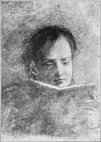 Vóór ons staat het eenzame en stroefbleeke Corsikaantje te Brienne, met zijn opvliegenden en toornigen trots en zijn ongenakelijke hooghartigheid tegenover de adellijke mede-scholieren. Hij is heel klein en nietig en smallekes in de schouders. Hij is schraal en schriel en hij loopt als een hazewind. Zijn zwart haar hangt stug om zijn wit, strak, fijn gezichtje. En zijn oogen diepen in onder het hooge voorhoofd en fonkelen woest en ongedurig. Zijn medeleerlingen sarren en krenken hem. Is hij wel van adel, dit sombere en melancholische baasje, deze lieveling van zijn mooie moeder Letizia? Wat een driftige, zich zelf opvretende ergernis in dit ziedende zieltje. En altijd in de eenzaamheid, ver van de militaire kweekelingen, als een groot mensch, peinzend en arbeidend en.... stoutmoedig.